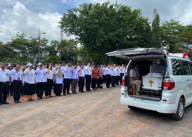 Suasana haru menyelimuti jalannya upacara. Setelah prosesi penghormatan terakhir, jenazah Jaya diberangkatkan menuju kantor Disdukcapil Kapuas.