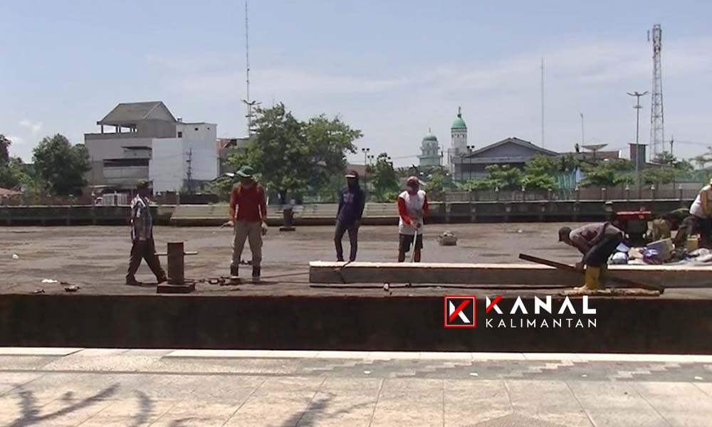 BANJARMASIN, Jembatan Penyeberangan Orang (JPO) di depan Mitra Plaza Banjarmasin telah selesai dibongkar. Kini beberapa kerangka besi digunakan untuk penyangga restoran terapung yang sedang dalam tahap pembangunan di atas Sungai Martapura, tepatnya di siring depan Balaikota Banjarmasin, Jalan RE Martadinata.