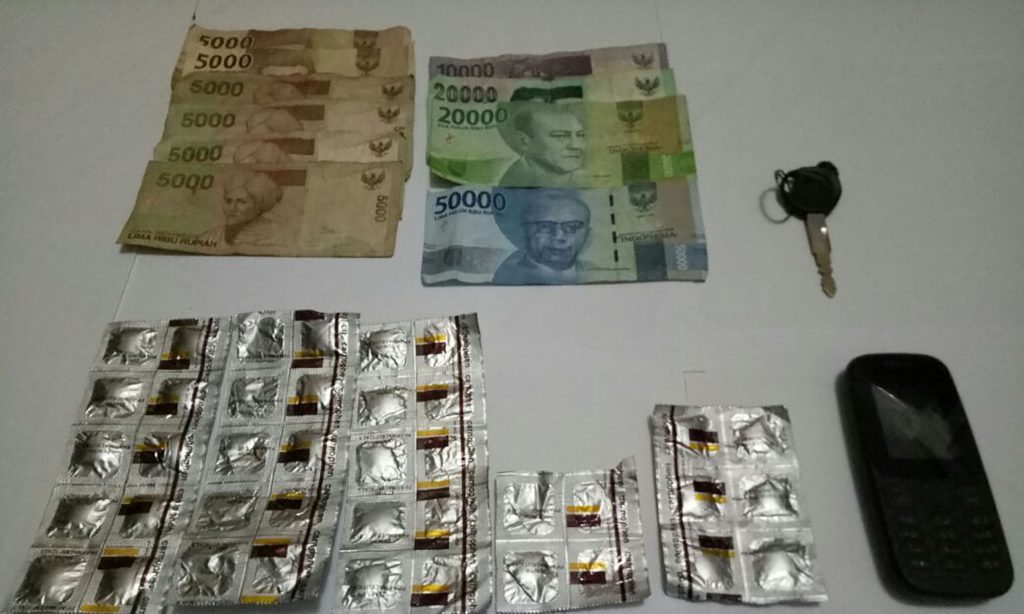 “Dari saku celana tersangka, ditemukan sebanyak 19 butir pil carnophen serta uang tunai sebesar Rp 130 ribu yang diduga hasil penjualan barang haram itu,†terang Iptu Suherman.