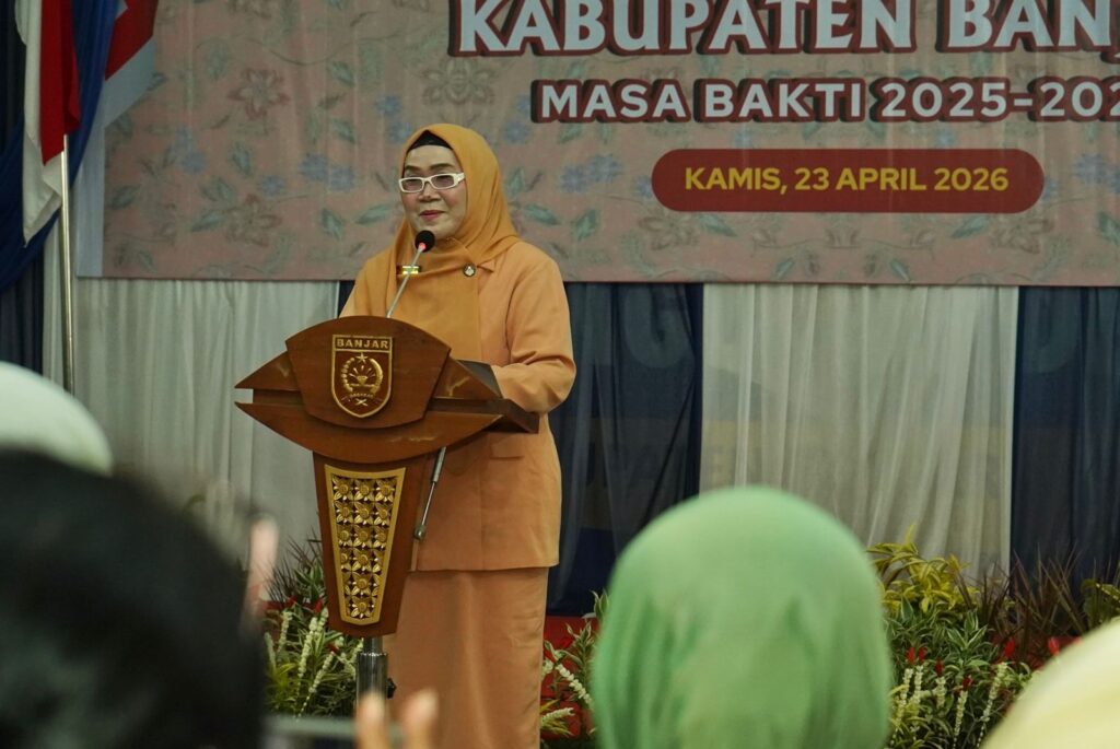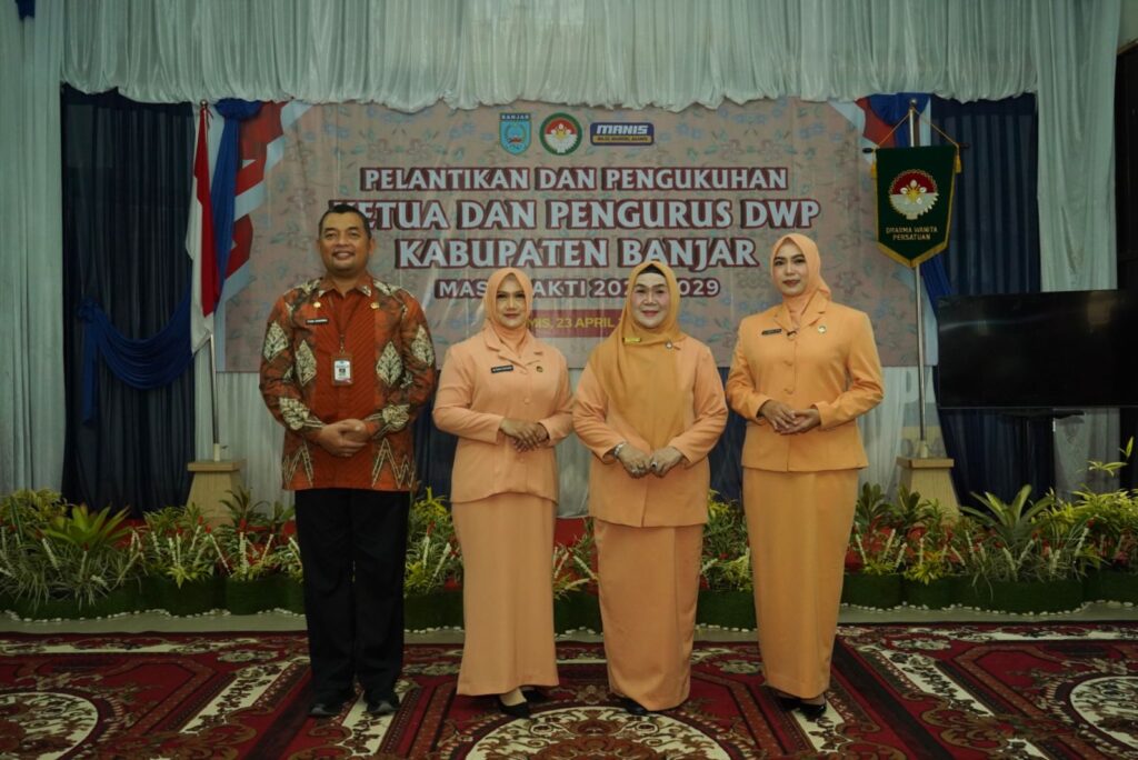 KANALKALIMANTAN.COM, MARTAPURA – Ketua DWP Provinsi Kalsel Masrupah Syarifuddin melantik Ketua dan Pengurus Dharma Wanita Persatuan (DWP) Kabupaten Banjar masa bakti 2025 – 2029, di Gedung Dekranasda, Martapura, Kamis (23/4/2026) pagi.