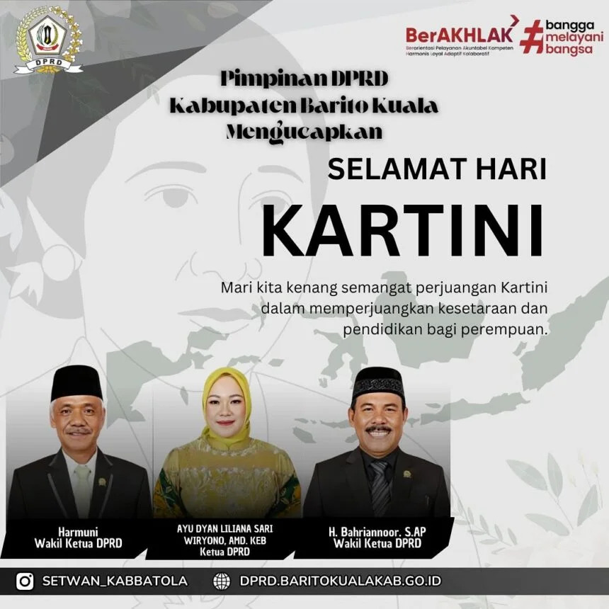 KANALKALIMANTAN.COM, MARABAHAN- Ketua DPRD Kabupaten Barito Kuala, Ayu Dyan Liliana Sari, A.Md.Keb, mengajak seluruh masyarakat, khususnya para perempuan Indonesia, untuk meneruskan semangat perjuangan Raden Ajeng Kartini dalam memperjuangkan kesetaraan dan kemajuan bangsa.