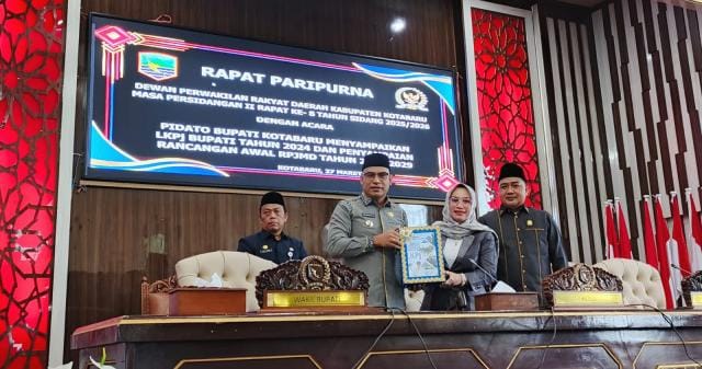 KANALKALIMANTAN.COM, KOTABARU – Rapat Paripurna masa persidangan II Rapat ke-8 Tahun Sidang 2025-2026 digelar oleh DPRD Kotabaru di ruang paripurna Gedung DPRD, Kamis (27/3/2025).