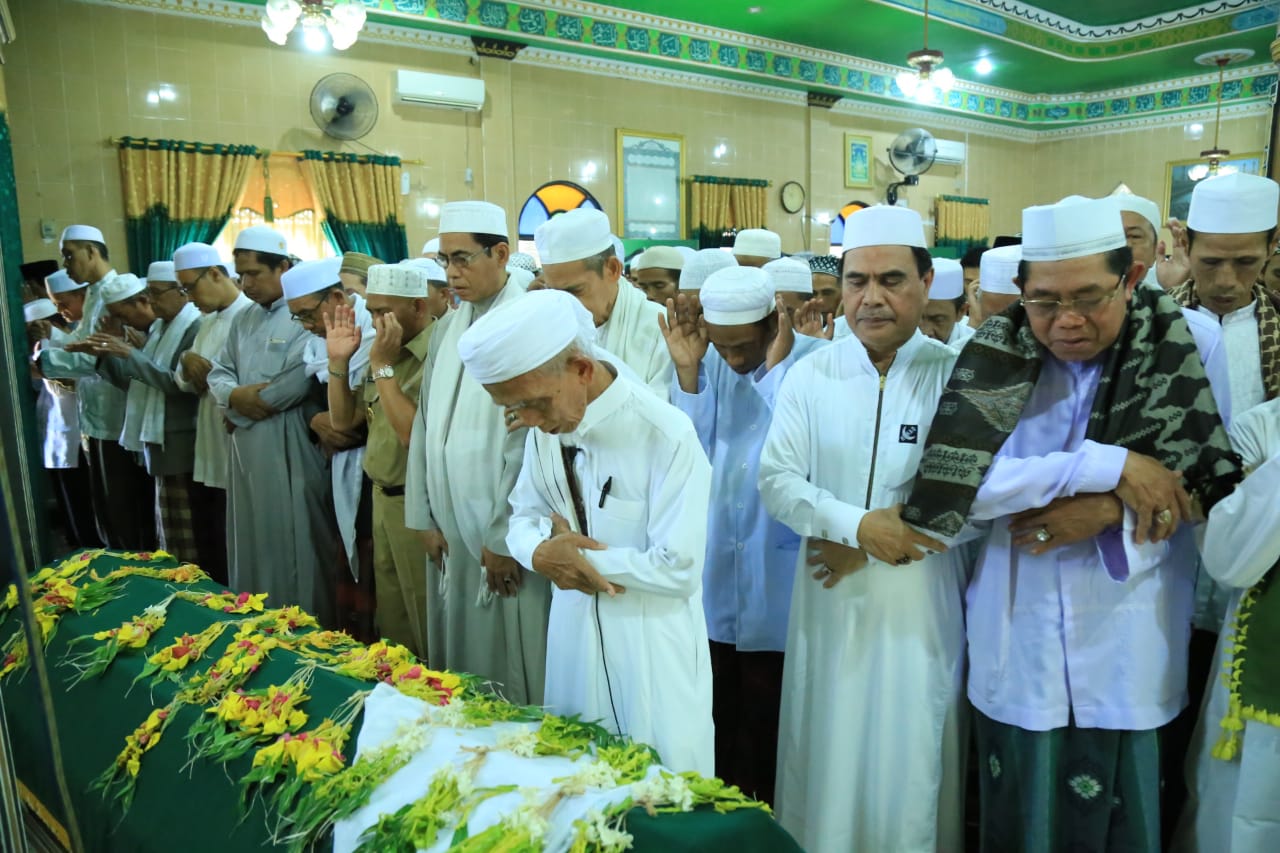 Tampak hadir dalam takziah serta proses pemakaman Bupati HSU H. Abdul Wahid HK beserta jajaran, Pejabat Forkopimda HSU, Keluarga Besar MUI HSU, Ketua DPRD HSU, tokoh-tokoh agama serta ratusan warga HSU yang merasa kehilangan salah satu tokoh ulama di HSU. (dew)