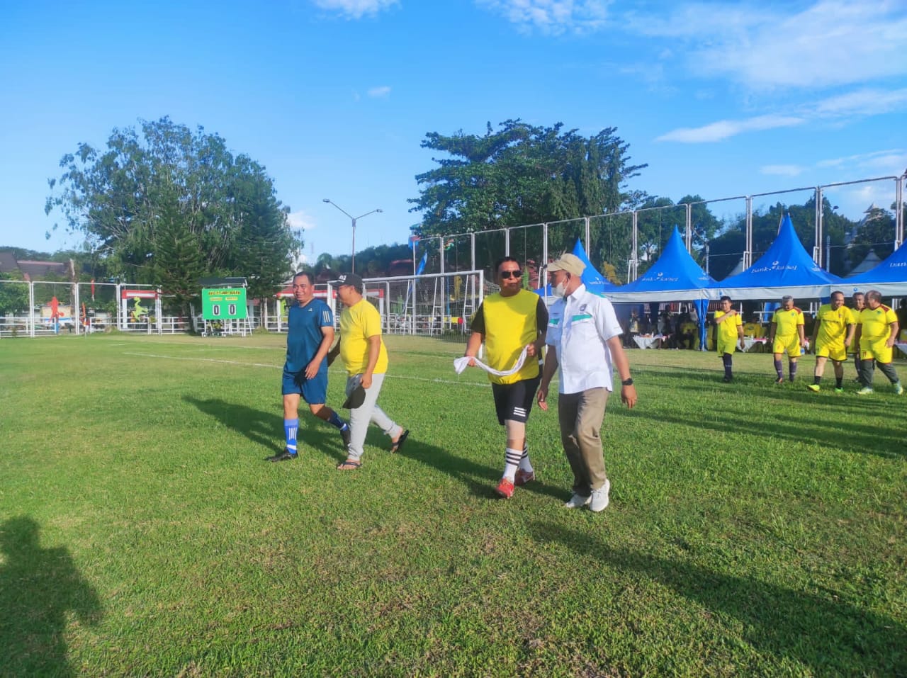 Dalam pembukaan Paman Birin Trophy V 2022, juga disajikan pertandingan eksibisi antara Paman Birin Allstar dan Pemkab HSU.(Kanalkalimantan.com/ibnu)