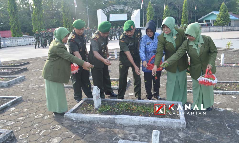 AMUNTAI, Memperingati HUT ke-61 Kodam Vl Mulawarman, Kodim 1001 Amuntai-Balangan melakukan ziarah dan tabur bunga ke Taman Makam Pahlawan Tabur Kecamatan Amuntai Utara, Kabupaten HSU, Rabu (17/7) pagi.