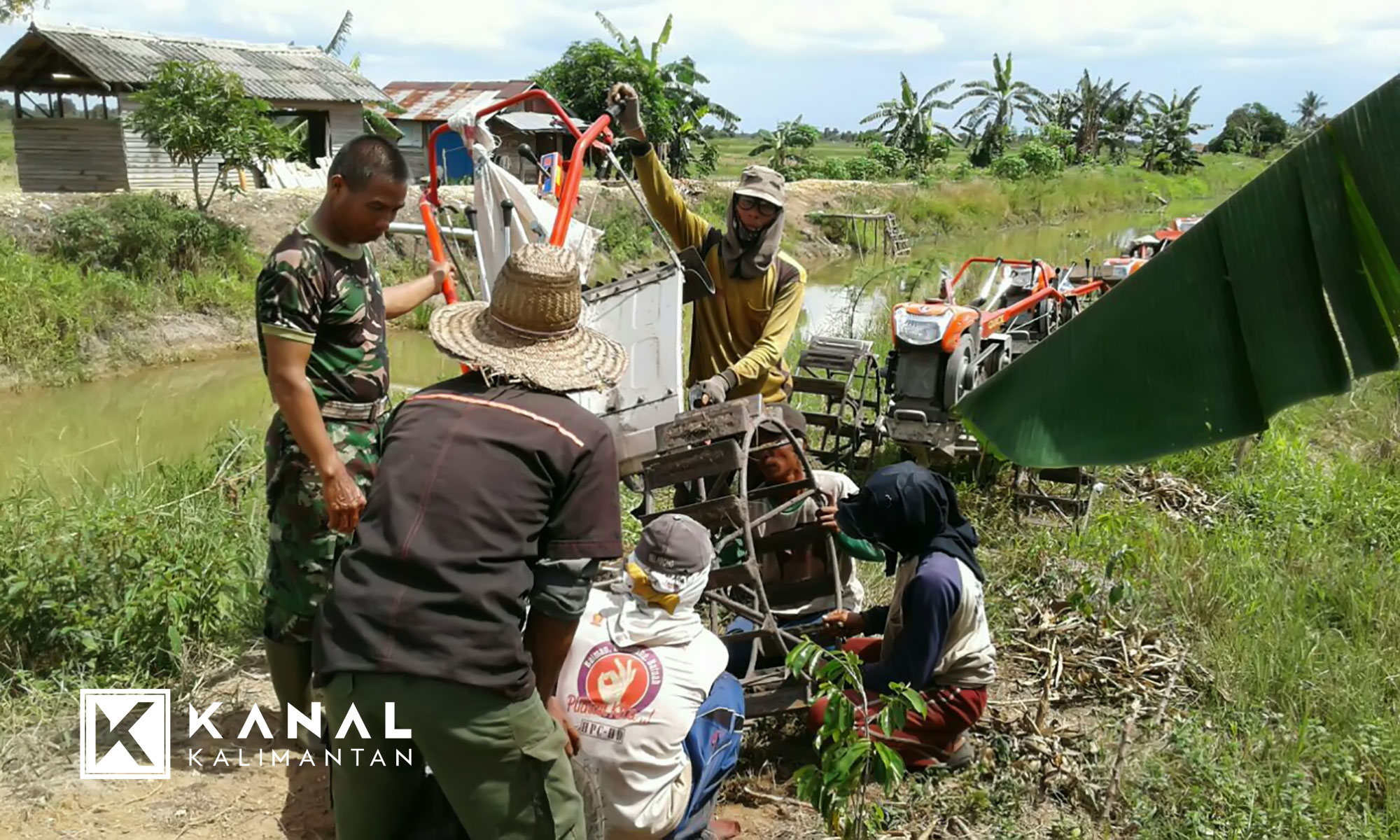 MARTAPURA, Kodim 1006/Mtp terus mendukung program kerja pemerintah pendampingan Upsus Pajale dan perluasan cetak sawah, melalui Babinsa turun langsung membantu Kelompok Tani Berkat Mufakat menggarap lahan pertanian di Desa Tajau Landung RT 02 Kecamatan Sungai Tabuk, Kabupaten Banjar.