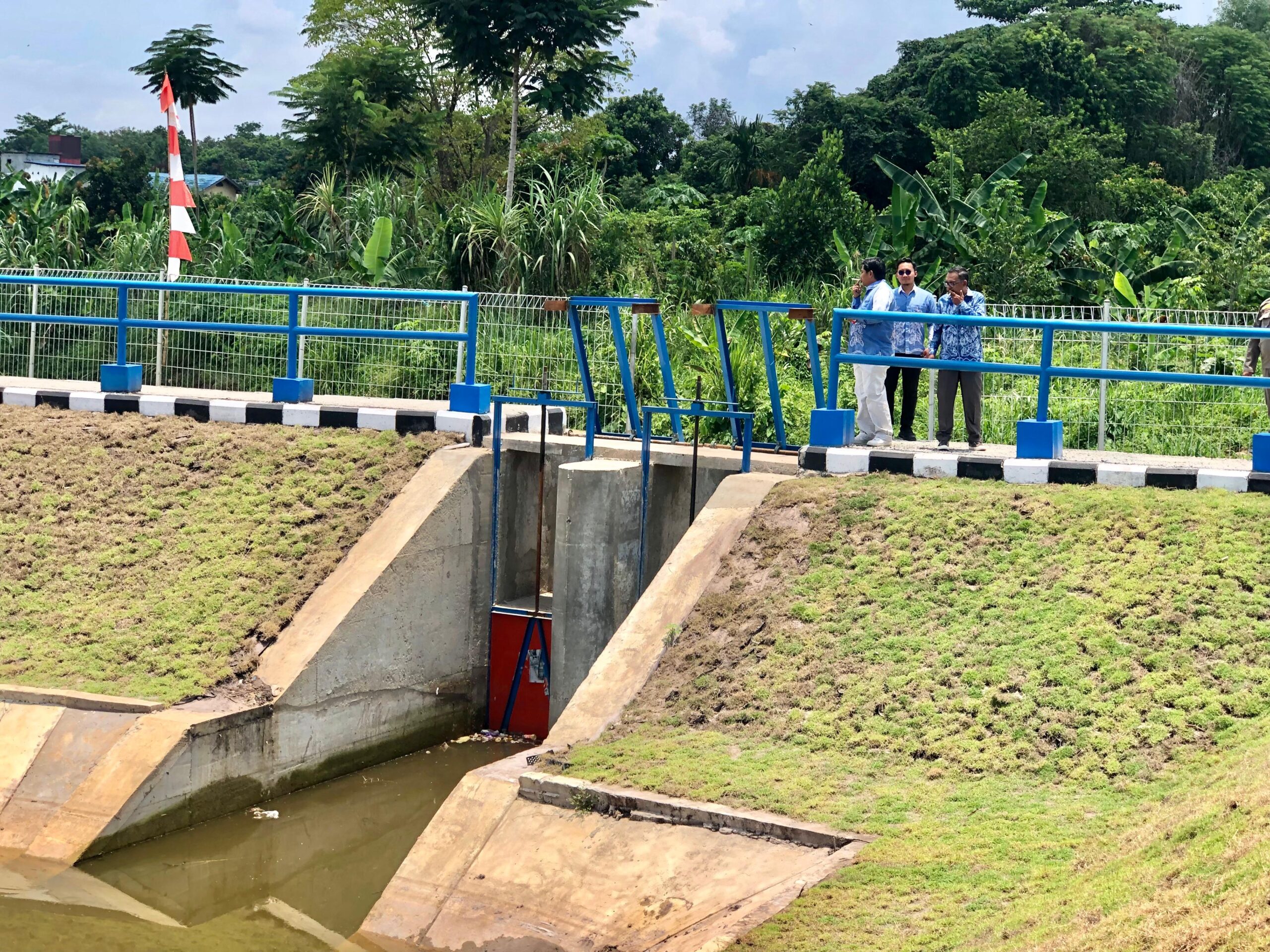 “Jadi air yang ditampung dari drainase-drainase yang ada di sekitar sini, kalau penuh baru kita limpahkan ke Sungai Kemuning. Jadi meruduksi lah karena memang yang berdampingan, berdekatan kan memang sungai Kemuning,” tambahnya.