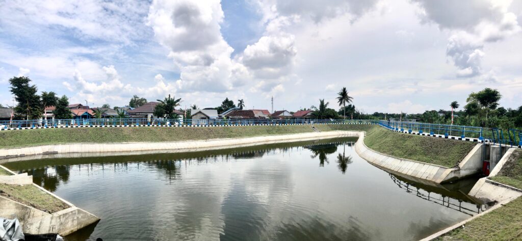 KANALKALIMANTAN.COM, BANJARBARU – Berlokasi di tepi Sungai Kemuning, sebuah kolam retensi (flood retention pond) dirancang dengan sistem drainase terintegrasi untuk penanggulangan dan mereduksi banjir di Kelurahan Loktabat Utara.
