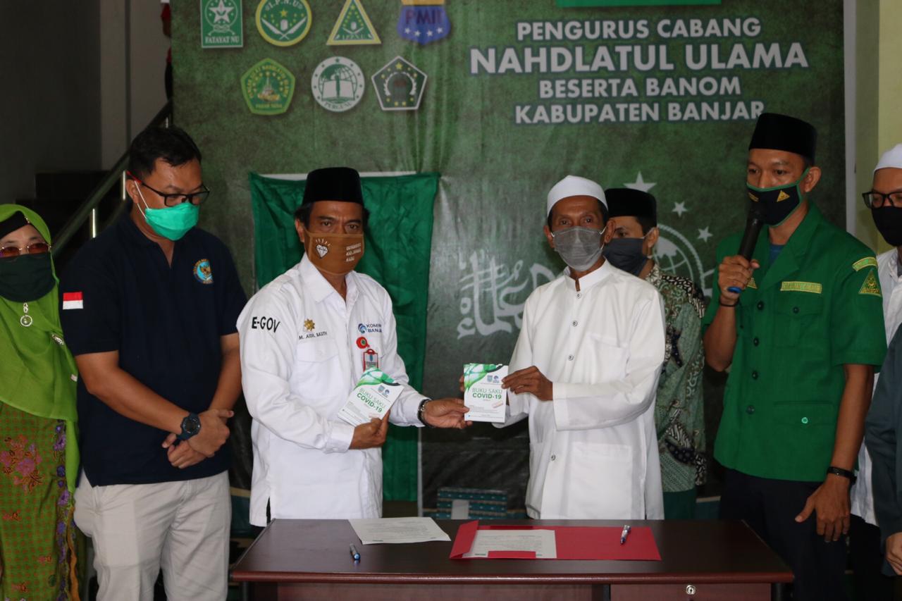 Kominfostandi Banjar Fasilitasi Internet dan Bagikan Buku Saku Covid-19 ke PCNU Banjar