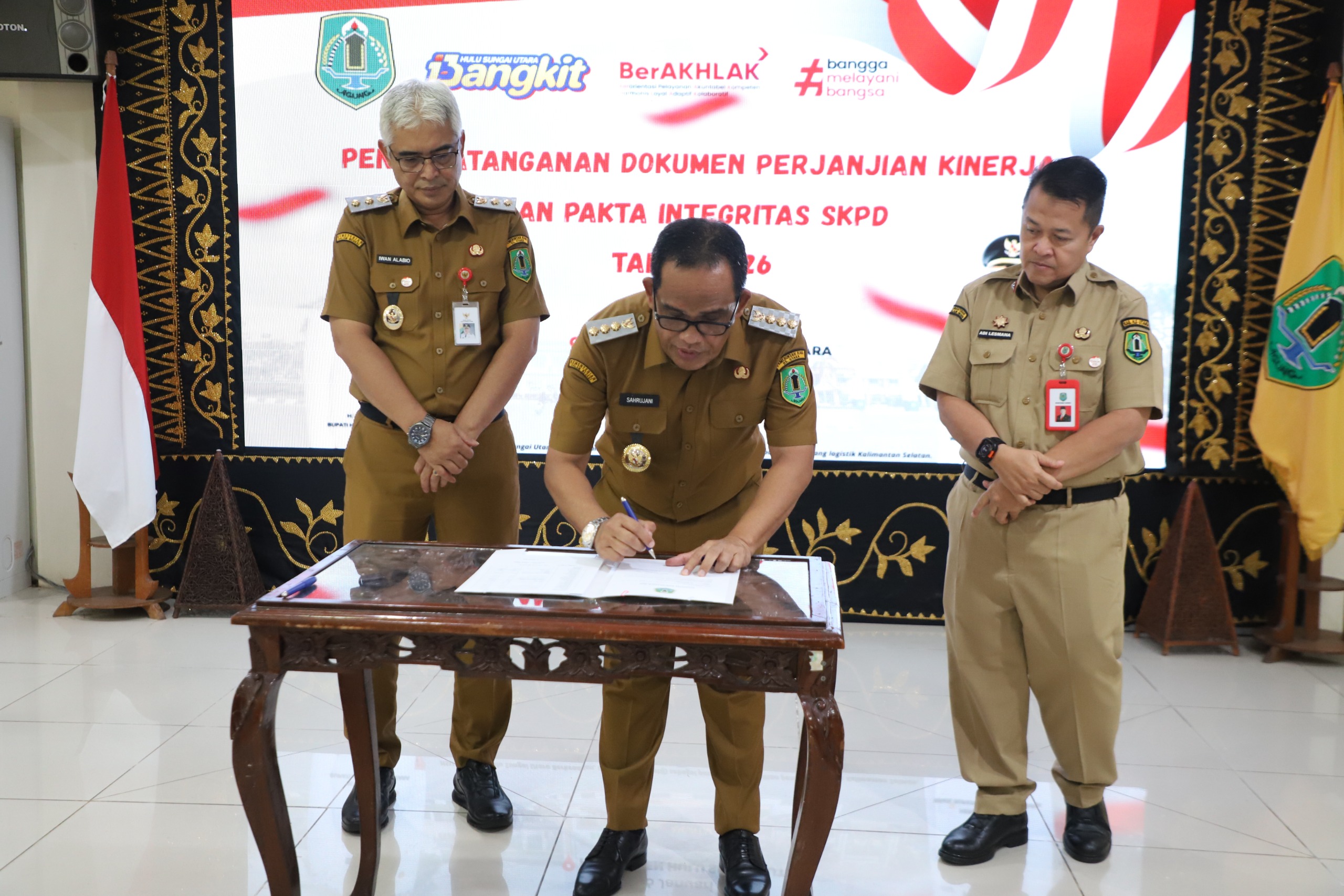 KANALKALIMANTAN.COM, AMUNTAI – Wujud komitmen Pemerintah Kabupaten Hulu Sungai Utara (HSU) melakukan penandatanganan perjanjian kinerja dan pakta Integritas bagi seluruh Satuan Kerja Perangkat Daerah (SKPD) di lingkungan Pemerintah Kabupaten (Pemkab) HSU, Senin (26/1/2026) siang.