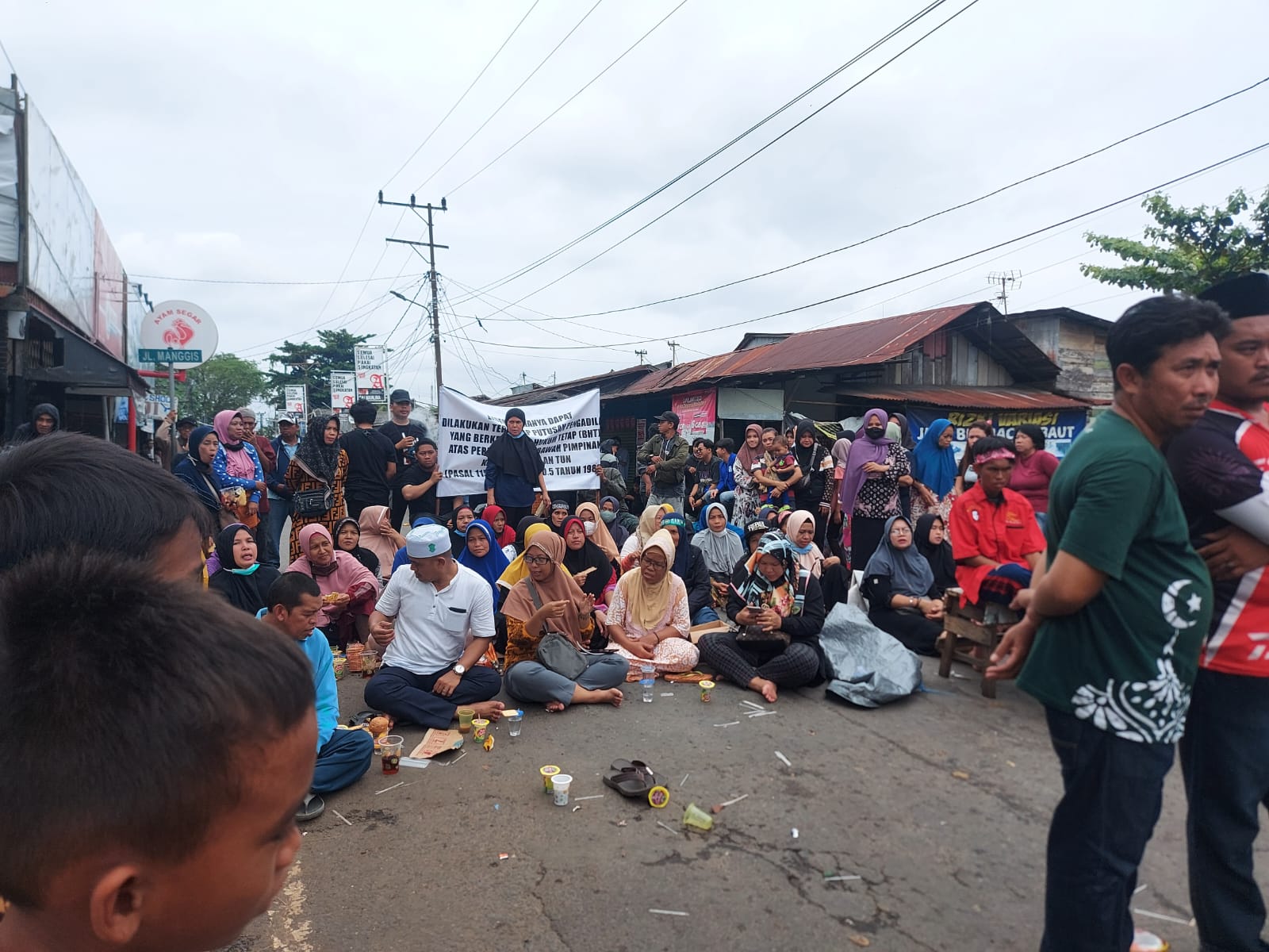 Warga Pasar Batuah, Kelurahan Kuripan, Banjarmasin Timur memblokade jalan saat Pemko Banjarmasin akan melakukan pembongkaran, Sabtu (18/6/2022) siang. Foto: halim