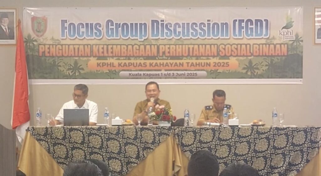 KANALKALIMANTAN.COM, KUALA KAPUAS – Unit Pelaksana Teknis (UPT) Kesatuan Pengelolaan Hutan Lindung (KPHL) Kapuas Kahayan menggelar Focus Group Discussion (FGD) penguatan kelembagaan perhutanan sosial binaan, Senin (2/6/2025).