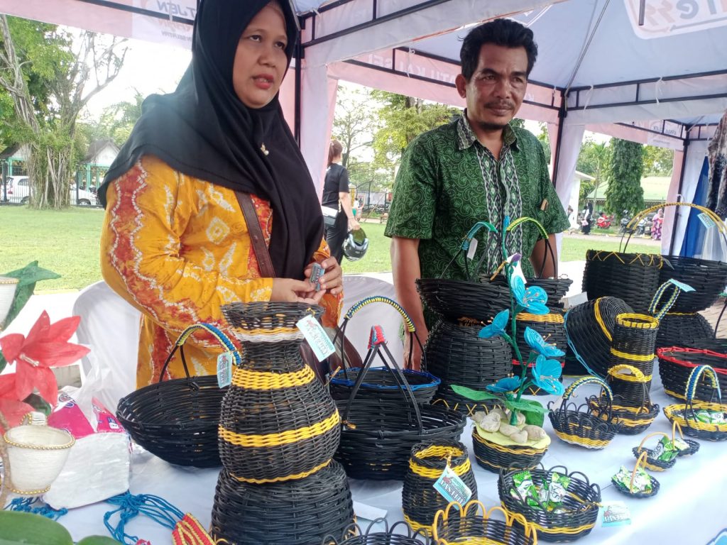Seperti pada Bazar yang yang dilaksanakan oleh Kanwil Perbendaharaan Kalsel Sabtu (4/3/2023) pagi di halaman Kantor Gubernur Lama, Siring 0 Kilometer Banjarmasin, turut berpartisipasi untuk memasarkan produk hasil tangannya. (Kanalkalimantan.com/rizki)