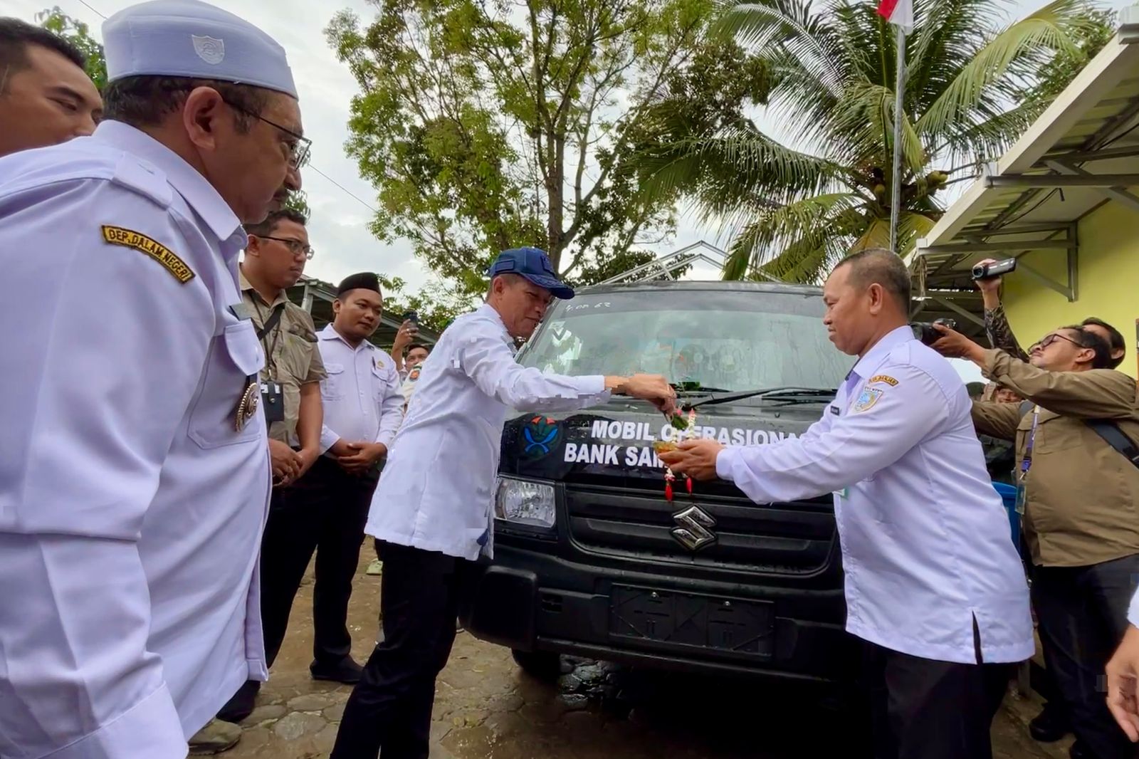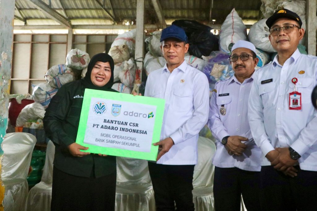 Dalam kunjungannya, Hanif Faisol Nurofiq menyerahkan bantuan mobil operasional dari PT Adaro Indonesia, pantau tumpukan sampah kemasan karungan yang sudah dibeli dari masyarakat serta memeriksa buku tabungan nasabah dengan saldo tertinggi Rp 3 juta lebih.