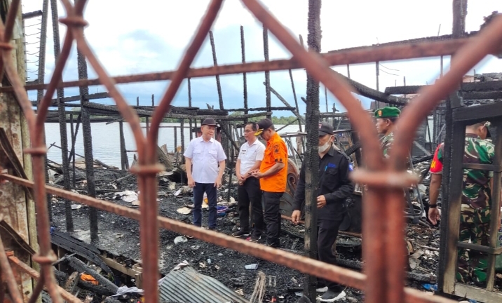 Kunjungan Bupati Kapuas, Ir Ben Brahim S Bahat, di lokasi kebakaran Palingkau Baru, Kecamatan Kapuas Murung, Rabu (4/1/2023) siang. Foto: ags