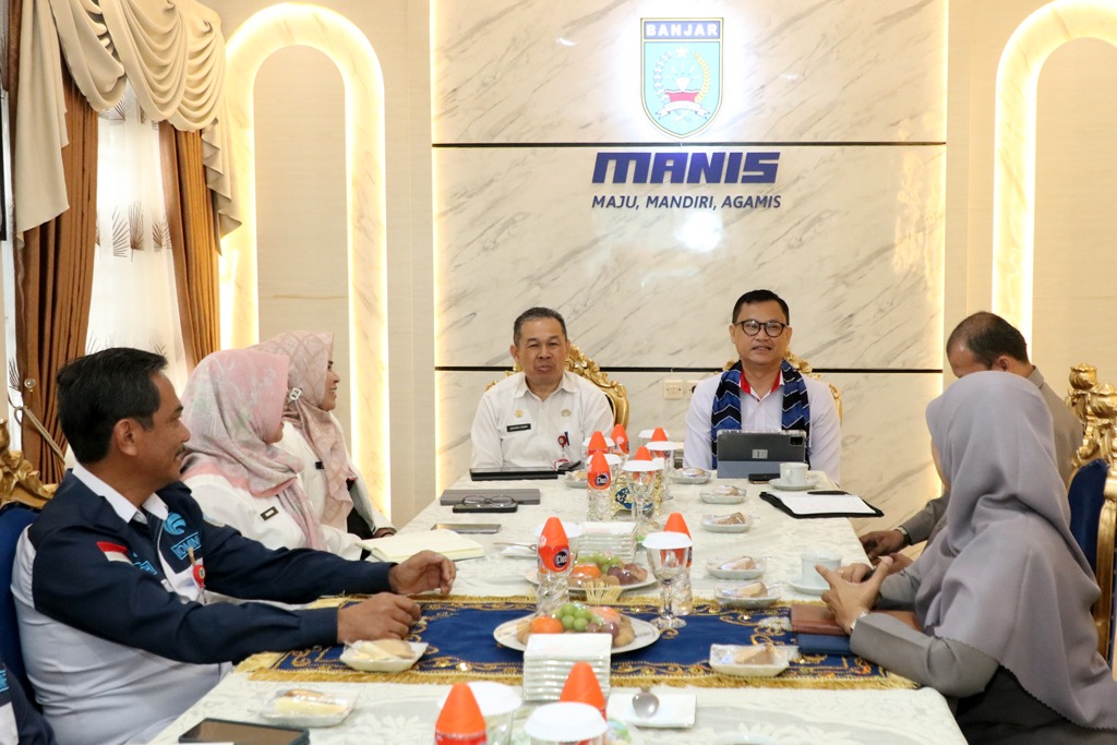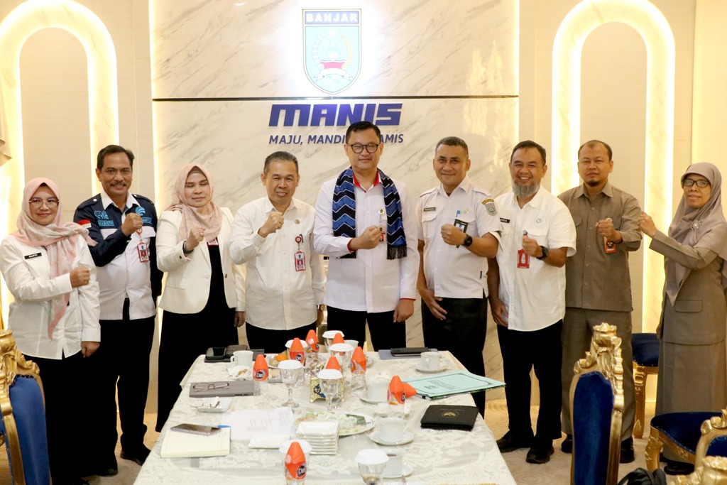 Asisten Administrasi Umum Rakhmat Dhany beserta kepala SKPD terkait menerima kunjungan kerja tersebut di Aula Manis Kantor Bupati Banjar.