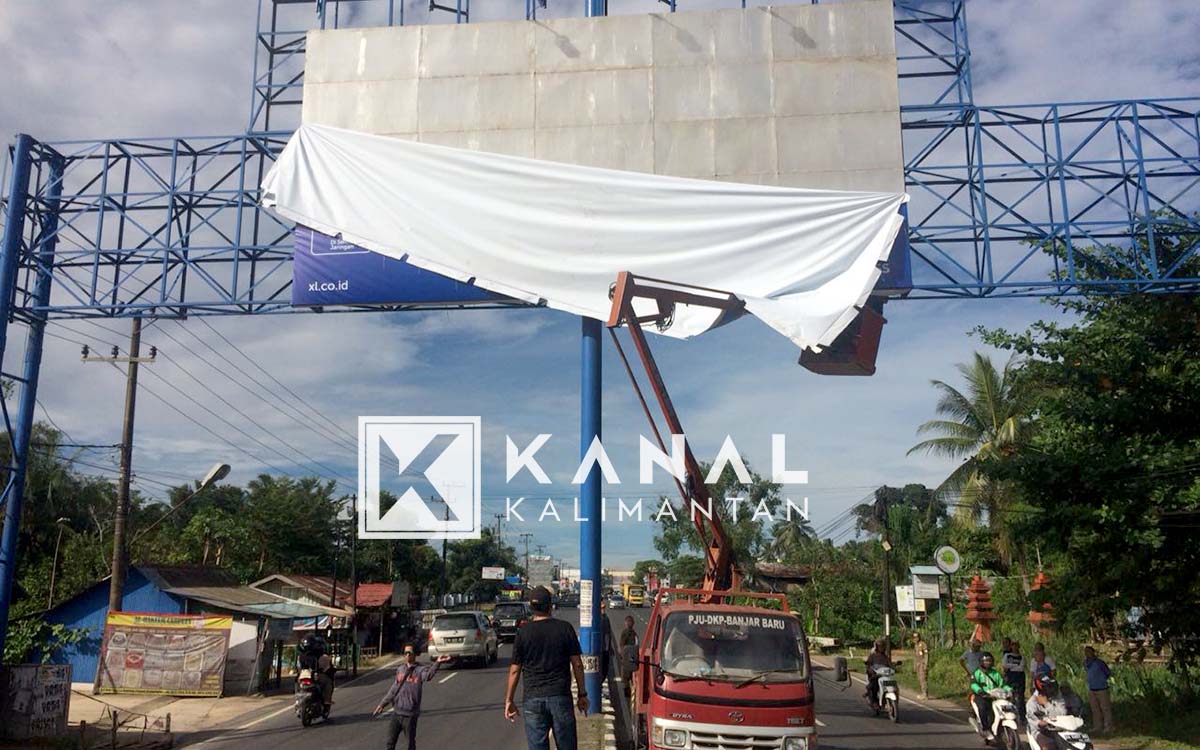 BPPRD Banjarbaru Turunkan Paksa Reklame Tanpa Izin dan Penunggak Pajak