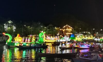 KANALKALIMANTAN.COM, BANJARMASIN — Kilauan lampu dari jukung hias terangi malam aliran Sungai Martapura depan Siring Menara Pandang Kota Banjarmasin, Selasa (23/9/2025) malam. Malam itu menandai...