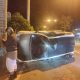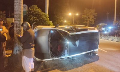 Diduga Berkecepatan Tinggi, Xenia Terguling di Depan Gerbang ULM Banjarbaru