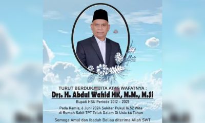KANALKALIMANTAN.COM, AMUNTAI – Kabar duka datang dari Kabupaten Hulu Sungai Utara (HSU), mantan Bupati HSU H Abdul Wahid HK meninggal dunia, Kamis (6/6/2024) sore. Dari informasi...