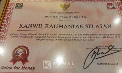 BANJARMASIN, Kantor Wilayah Kementerian Hukum dan HAM Kalsel raih penghargaan sebagai Kantor Wilayah Terbaik III dalam mendorong E-Gov dan pemanfaatan teknologi informasi dalam pelaksanaan tugas dan...