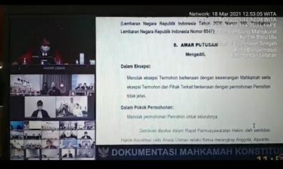 KANALKALIMANTAN.COM, JAKARTA – Majelis hakim Mahkamah Konstitusi (MK) akhirnya memutus sengketa Pilkada Kotabaru. Dalam amar putusan yang dibacakan majelis pada sidang yang berlangsung Kamis (18/3/2021), mahkamah...