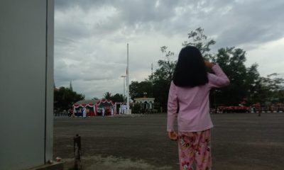 Seorang Bocah Ikut Hormat Bendera Merah Putih Saat Parade Senja di Banjarbaru