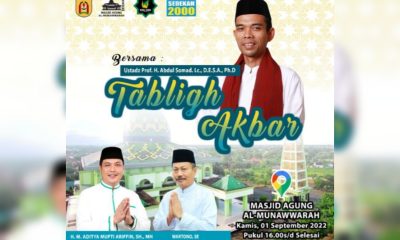 KANALKALIMANTAN.COM, BANJARBARU – Ustadz Abdul Somad alias UAS akan hadir di Kota Banjarbaru. Besok, pemilik gelar LC Universitas Al Azhar Kairo Mesir ini akan menyampaikan tausiyah...