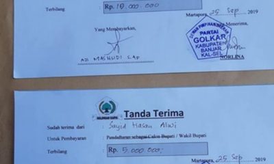 MARTAPURA, Uang ‘mahar’ politik tanda keseriusan mendaftar menjadi bakal calon Bupati/Wakil Bupati Banjar yang diwajibkan DPD Partai Golkar Banjar menjadi bola liar. Tim Penjaringan di DPD...