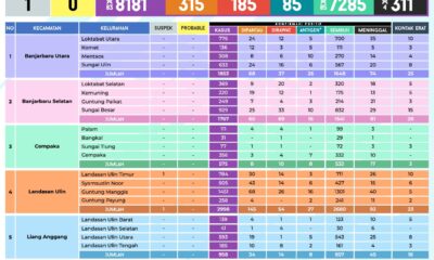 KANALKALIMANTAN.COM, BANJARBARU – Kasus positif Covid-19 di Banjarbaru hari ini bertambah 83 orang. Dengan tambahan tersebut, kini total kasus Covid-19 mencapai 8.181 kasus. Data Dinas Kesehatan...