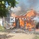 BANJARBARU, Si jago merah habiskan sebuah kios stiker, di jalan A Yani Km 37 Gang Petai, samping pintu keluar parkir Q Mall Banjarbaru, Rabu (9/5) sekitar...