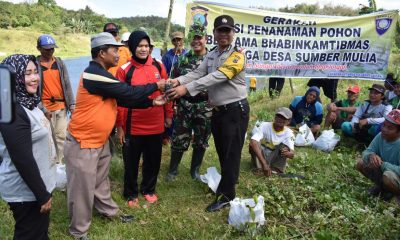PELAIHARI, Bhabinkamtibmas Desa Sumber Mulia Polsek Pelaihari, Polres Tanah Laut Bripka Rahmat bersama warga Desa melaksanakan Penanaman 15.000 bibit Pohon di Desa Binaannya, Desa Sumber Mulia...