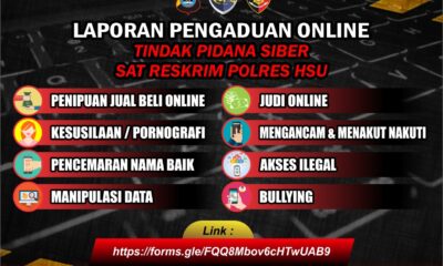 KANALKALIMANTAN.COM, AMUNTAI – Satreskrim Polres Hulu Sungai Utara (HSU) membuat inovasi berbentuk layanan pengaduan masyarakat tentang tindak pidana UU ITE secara online. Inovasi dibuat mempermudah masyarakat...