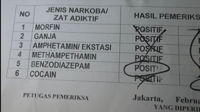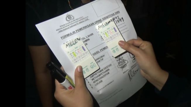 Tes urin tersebut digelar Dit Resnarkoba Polda Metro Jaya saat melakukan razia protokol kesehatan di Bar Brotherhood, Gunawarman, Jakarta Selatan.