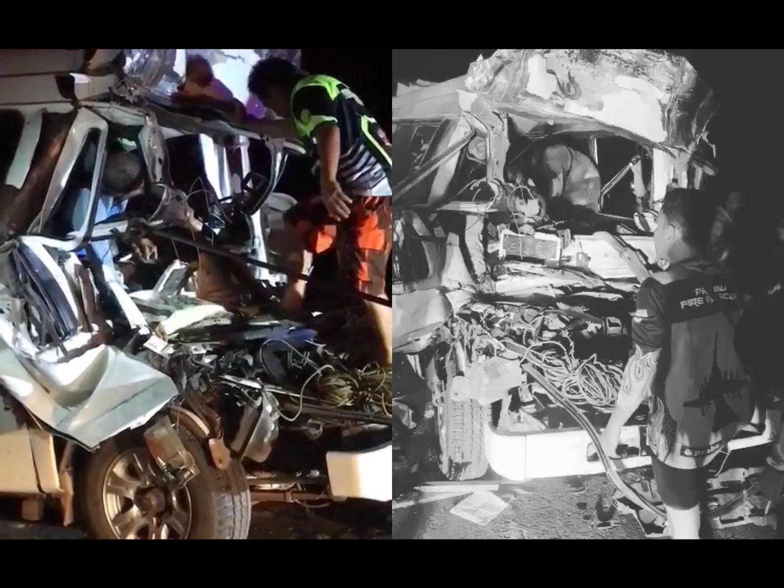Melalui video yang beredar terlihat, bus mini itu mengalami ringsek parah di bagian depan dan belakang usai badan bus bertabrakan dengan truk Fuso.