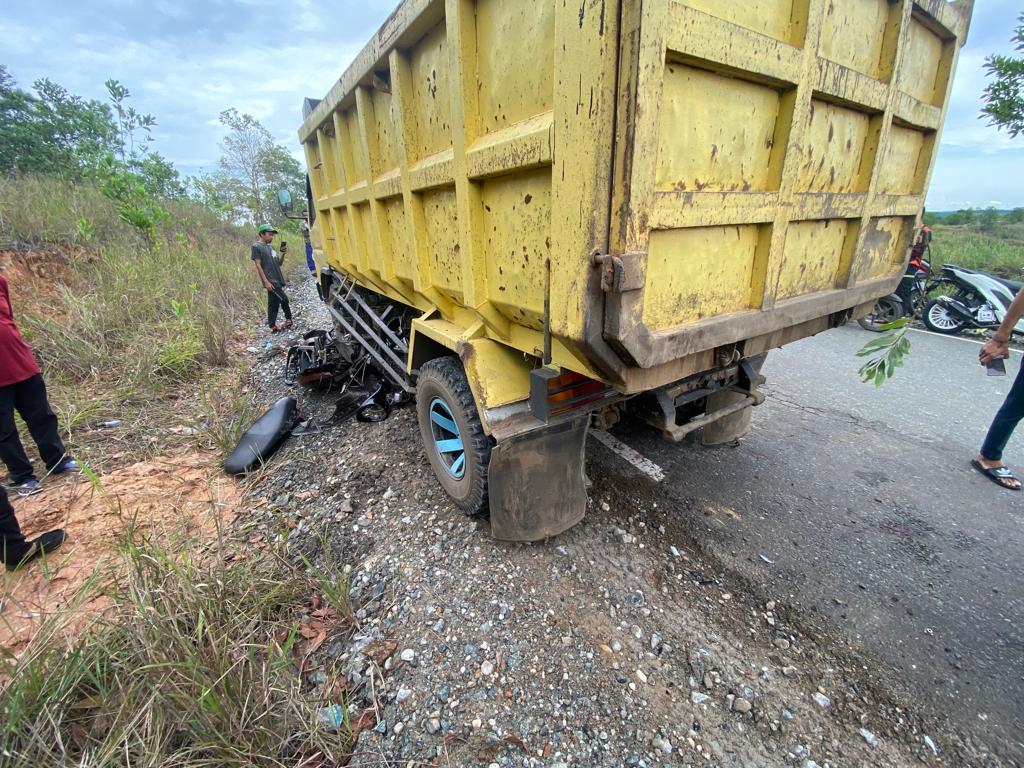 Akibat tabrakan, Haspi terjatuh ke bagian bawah truk. Korban meninggal dunia di lokasi kecelakaan.(Kanalkalimantan.com/ibnu)