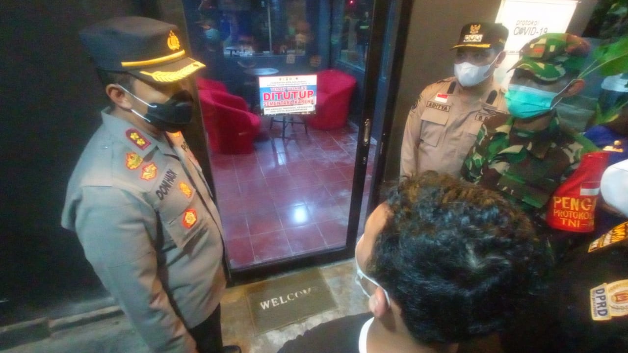 “Pertama karena tidak memiliki izin usaha. Kedua, melanggar waktu operasional selama PPKM dan ditambah lahu adanya pengunjung yang positif terpapar virus. Kita akan tutup kafe ini sembari menunggu pemiliknya mengurus izin, termasuk mensterilkan tempat. Jika tidak diurus izin, kami tutup selamanya,” tegasnya.