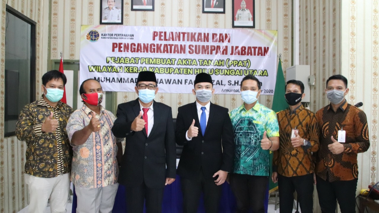 Hal ini dikemukakan Chris Pius Joko Sriyanto setelah melantik dan pengambilan sumpah jabatan Muhammad Widiawan Fachrizal SH MKn, sebagai Pejabat Pembuat Akta Tanah (PPAT) baru di wilayah kerja Kabupaten HSU, Jum’at (2/10/2020).