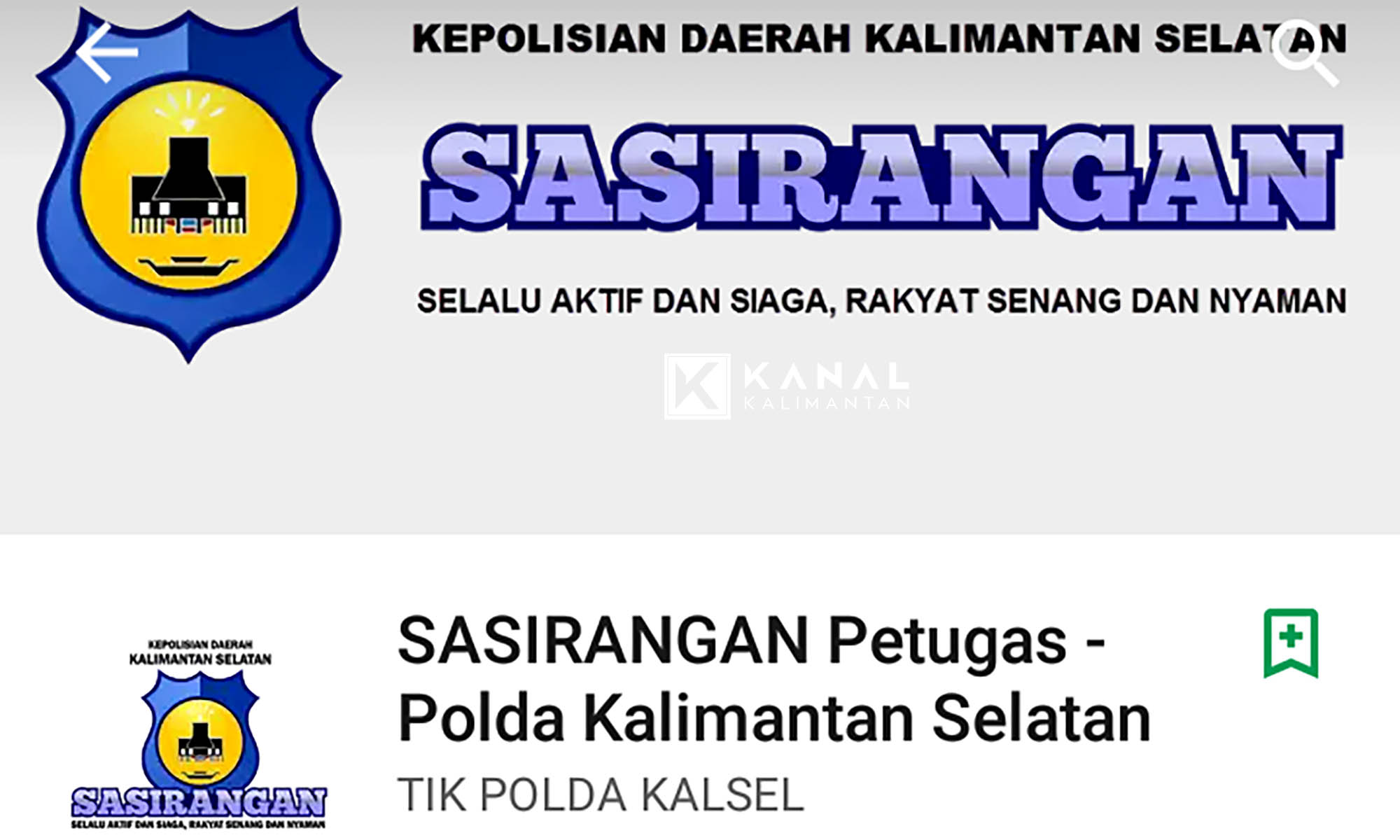 BANJARMASIN, Untuk meningkatkan pelayanan kepada masyarakat yang kian melek teknologi, Polda Kalsel meluncurkan aplikasi layanan berbasis android Selalu Aktif dan Siaga, Rakyat Senang dan Nyaman (Sasirangan) yang sudah bisa diunduh sekarang.