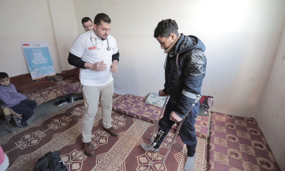 Remaja laki-laki itu, sebut saja Rafa. Tubuhnya masih harus ditopang kruk untuk membantunya berjalan. Rafa dan keluarganya adalah salah satu penerima manfaat yang mendapat pelayanan kesehatan ACT.