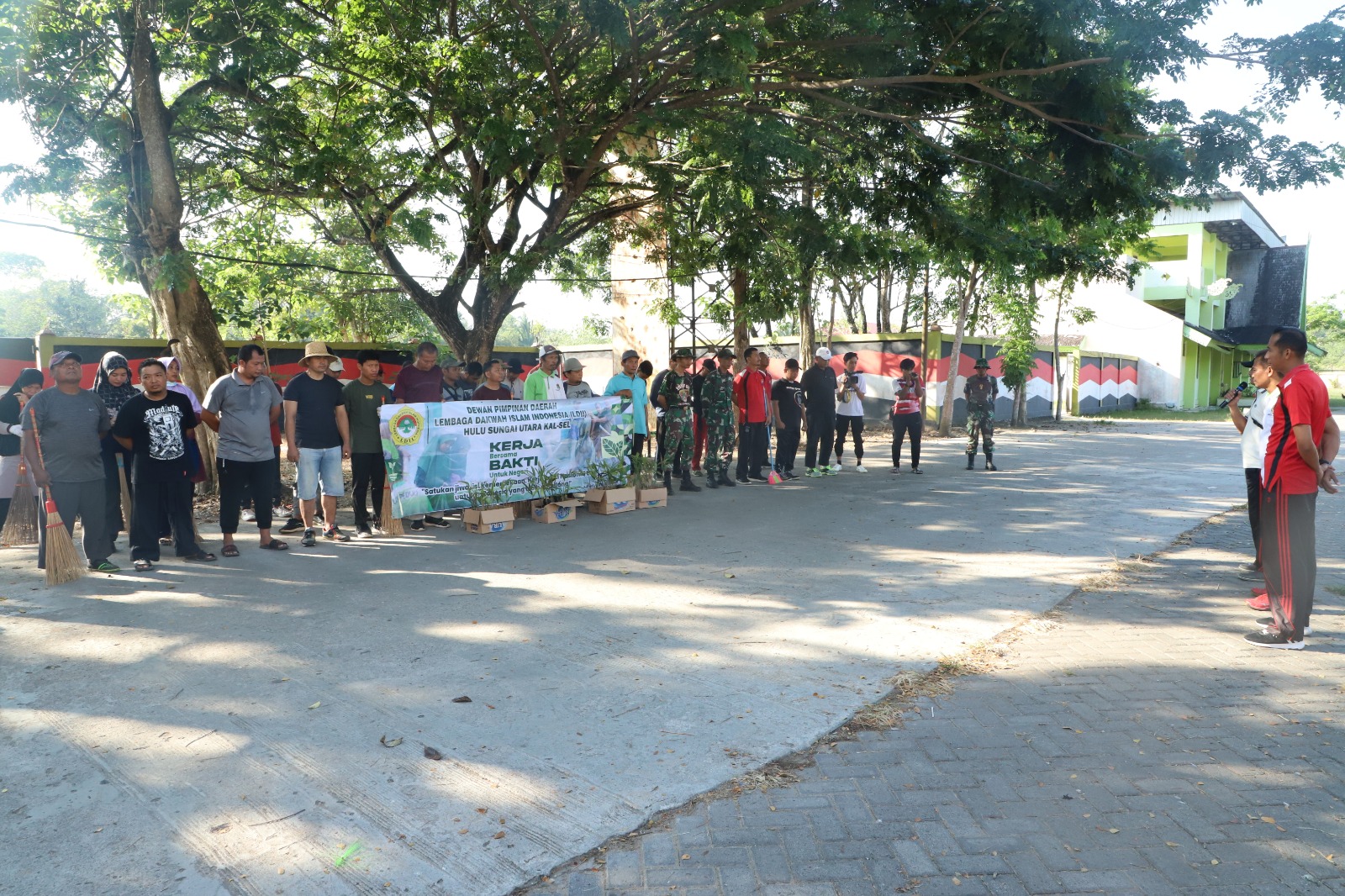 KANALKALIMANTAN.COM, AMUNTAI – Puluhan pohon palem ditanam dalam aksi kerja bakti yang digelar oleh Lembaga Dakwah Islam Indonesia (LDII) Kabupaten Hulu Sungai Utara (HSU) di kawasan GOR Pangeran Suryanata Karias Amuntai, Jumat (4/8/2023) pagi.