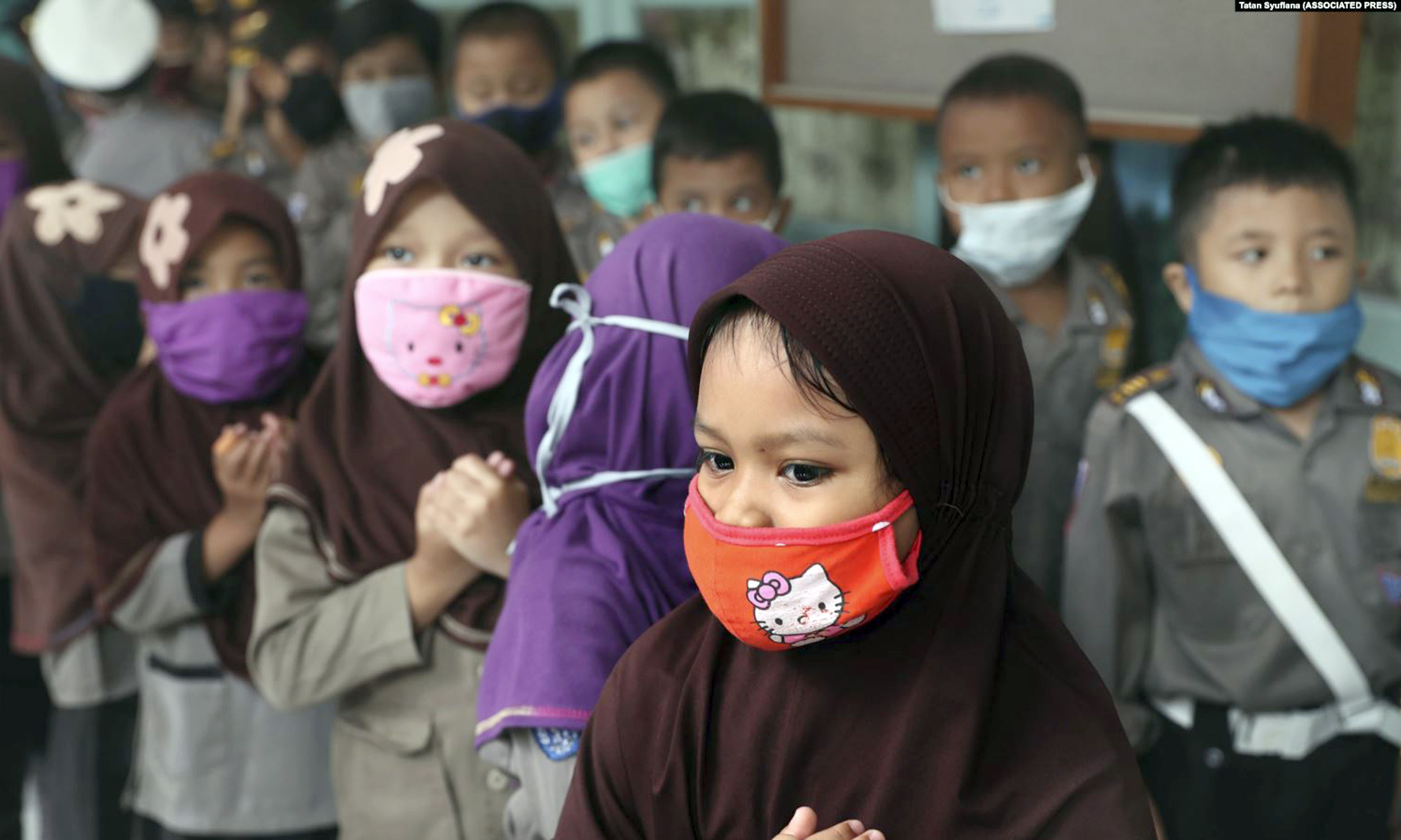 Anak-anak mengenakan masker sambil memainkan ponsel di dalam sebuah rumah di kawasan padat penduduk di Jakarta. (Foto: ilustrasi/Reuters)