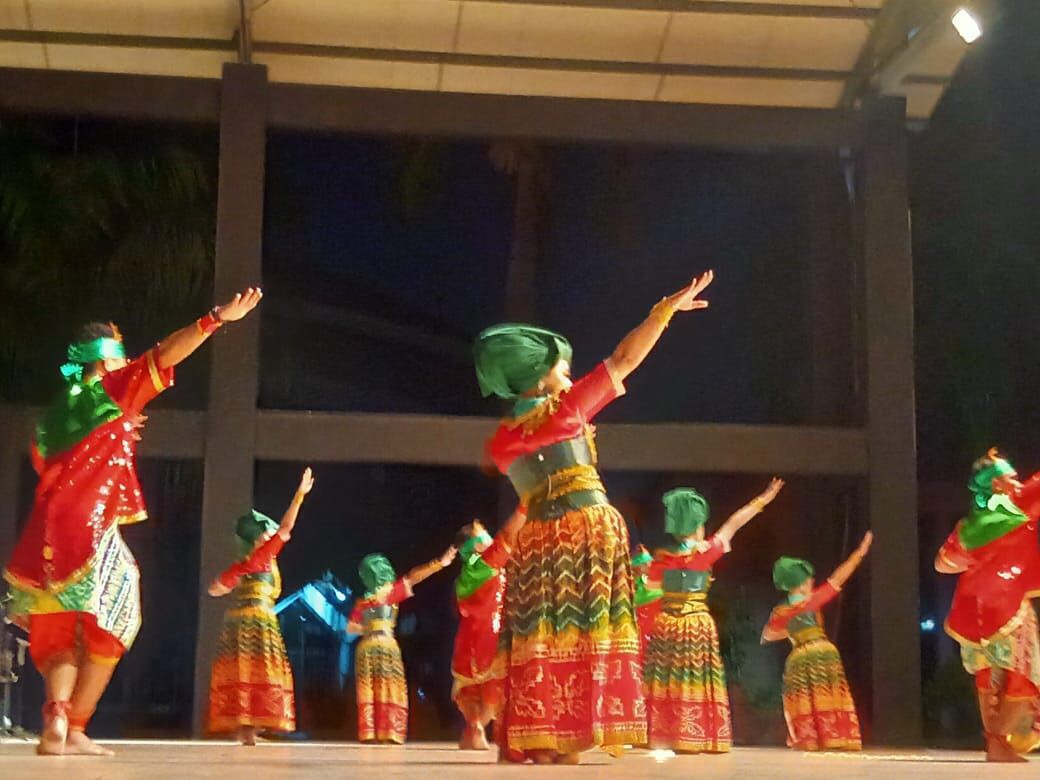 Di bawah naungan Sanggar Lintang Kencana dari Pelaihari, 10 penari dan 10 pemusik tampil memukau para penonton  di panggung terbuka Bakhtiar Sanderta, Taman Budaya Kalsel, Sabtu (13/7) malam.