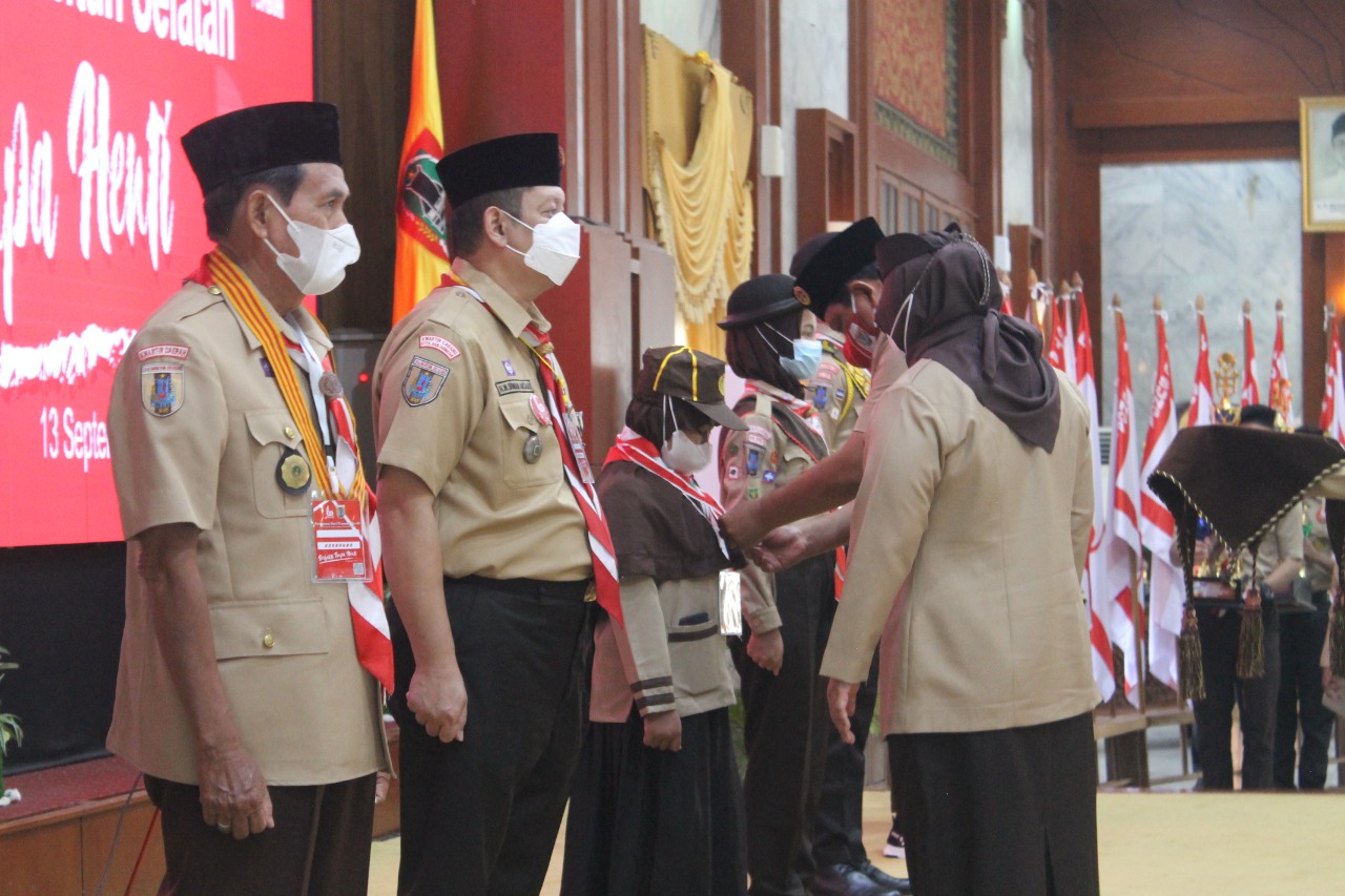 KANALKALIMANTAN.COM, BANJARMASIN – Peringatan Hari Pramuka ke-60 tingkat daerah Kwarda Kalsel berlangsung di gedung Mahligai Pancasila, Senin (13/9/2021).