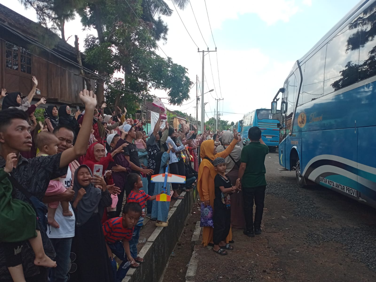 Bahkan, tak sedikit warga yang telah menunggu sejak pagi sudah berkumpul di halaman Asrama Haji Banjarbaru dengan membawa bekal makanan dan minuman layaknya piknik bersama keluarga.