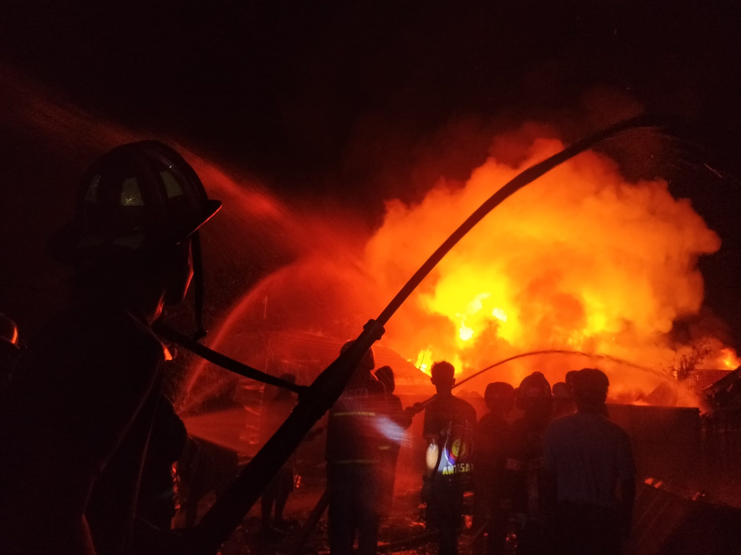 Terlebih bahan bangunan yang terbuat dari kayu semakin membuat kobaran api menjulang tinggi ke atas permukaan.