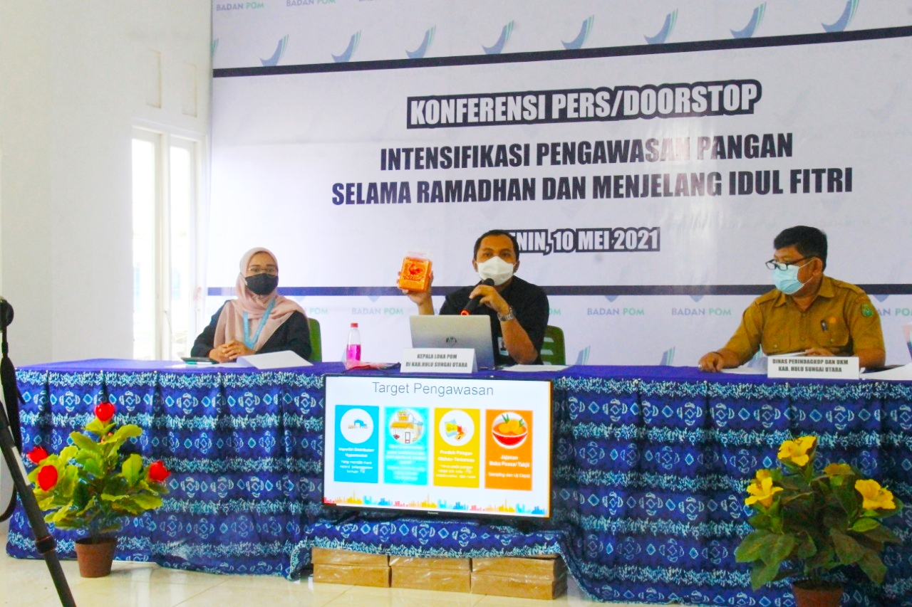 Hal tersebut, diungkapkan Kepala Loka POM di Kabupaten HSU Herry Purwanto saat konferensi pers intensifikasi pengawasan selama Ramadhan dan menjelang Idul Fitri 1442 Hijriah bersama Dinas Perindustrian perdagangan dan Koperasi (Disperindagkop) Kabupaten HSU, Senin (10/5/2021).