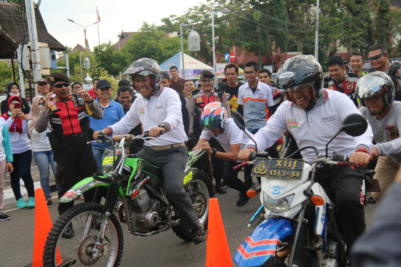 Bahkan Bupati HSU H Abdul Wahid dan Kapolres HSU AKBP Ahmad Arif Sopiyan ikut serta memeriahkan kegiatan dengan ikut mengendarai motor dalam adu dorong sepeda motor.
