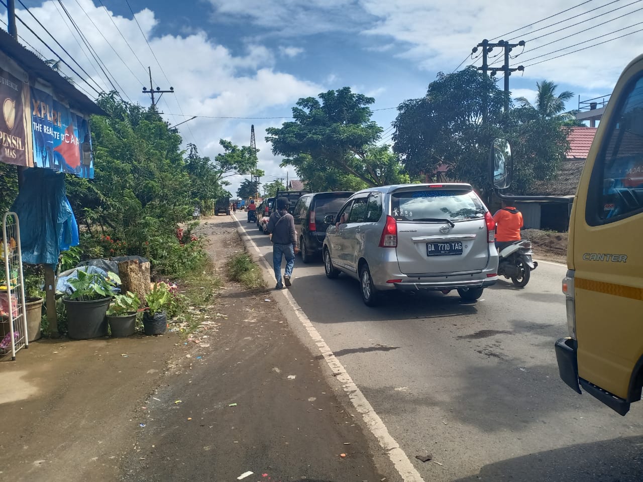 “Ya kalau yang saat ini masih belum seberapa masih macetnya, kalau hari-hari sebelumnya kemungkinan bisa sampai 2 sampai 3 kilometer macetnya, dan itu dari kedua arah pasti sama-sama macet,” aku Siti Aisyah kepada Kanalkalimantan.com, Selasa (2/2/2021) siang. (kanalkalimantan.com/tius)