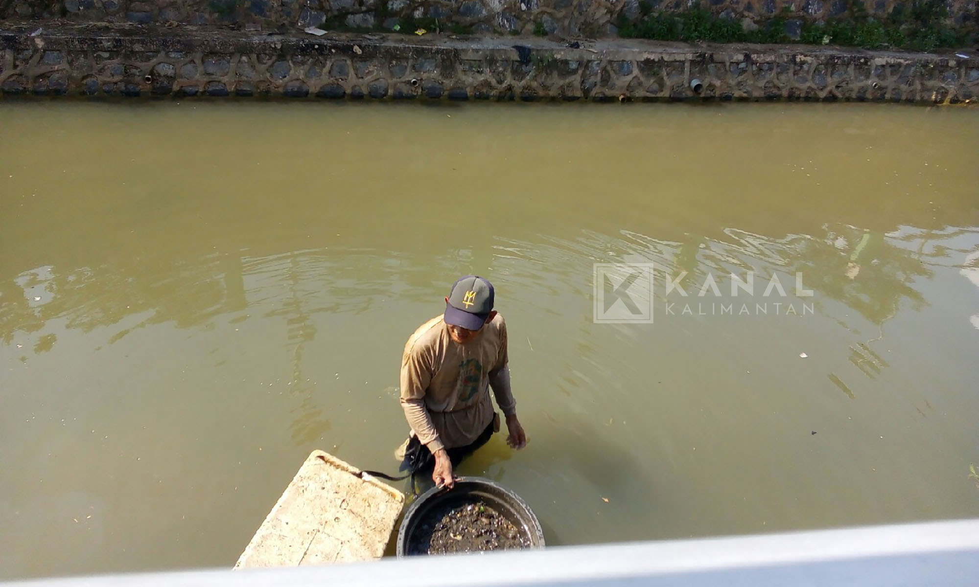 BANJARBARU, Sungai Kemuning merupakn lokasi yang menjadi favorit baru bagi kawula muda untuk bersantai. Namun ada satu pemandangan yang menarik bila bertandang ke tempat itu. Yakni seorang pria berpakaian lusuh yang sedang beraktivitas di sana. Dilengkapi jaring dan kotak stereofoam, ia menyisiri sungai dangkal tersebut. Apa yang dilakukan?